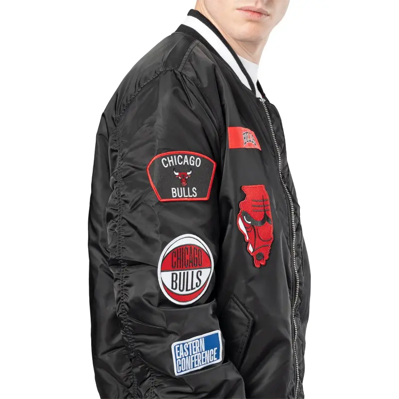 Upgrade your Bulls fashion with this premium Alpha Industries multi-patch, full-zip jacket from New Era!