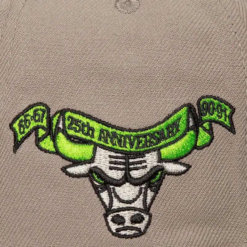 Men’s Chicago Bulls Mitchell & Ness Gray/Neon Green Core V Snapback Hat