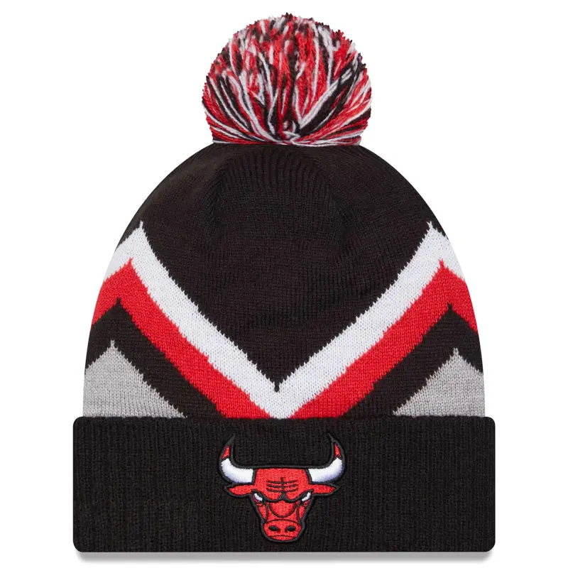 Men’s Chicago Bulls New Era Black Zig Zag Cuffed Knit Hat with Pom
